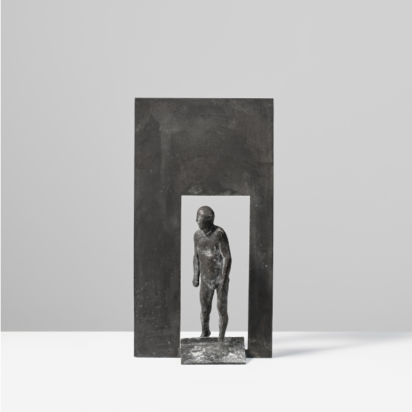 Waldemar Otto arbeitet in den 1970er Jahren in Bremen an dem Themenkomplex Figur im Raum. Reflektiert wird die existenzielle Verfasstheit des Menschen im Kontrast der ihm innewohnenden Ängste und äußerer Bedrohungen. Den Dialog zwischen starren Stäben, Sockeln, Platten und den gebogenen und gekrümmten Körpern wird er in seinem Oeuvre weiter fortführen.
